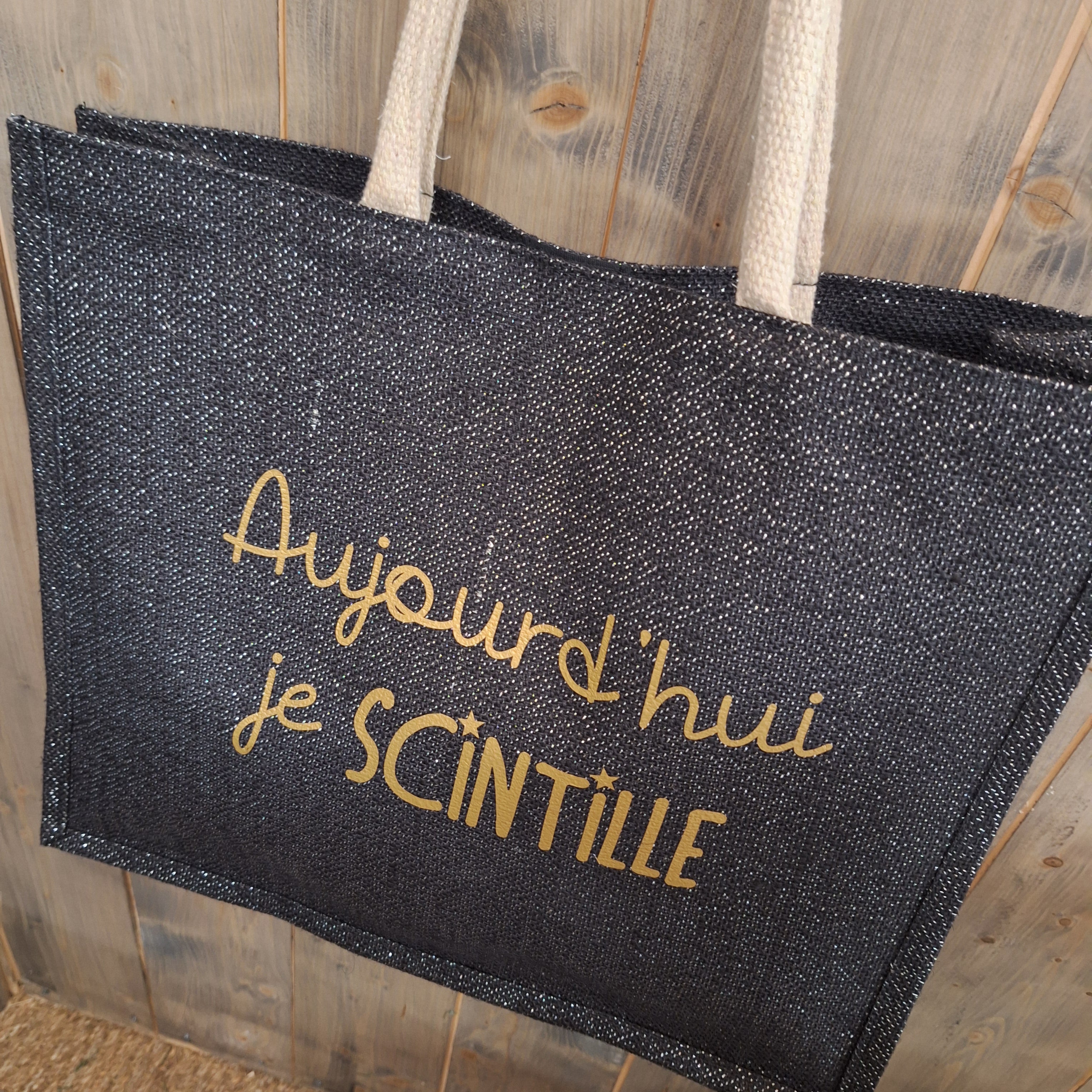 Sac en jute pailletté noir
