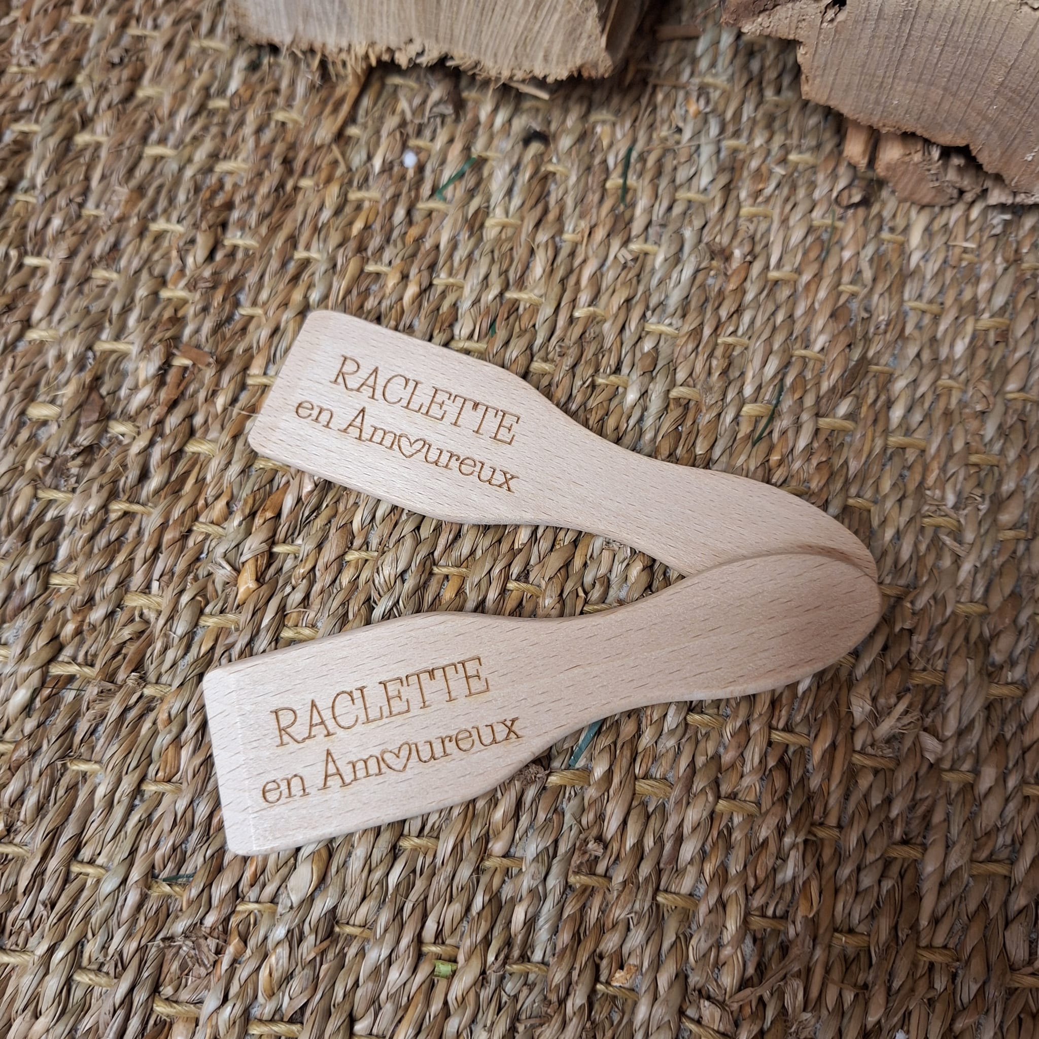 Découvrez notre lot de 2 Spatules à raclette "Raclette en Amoureux"