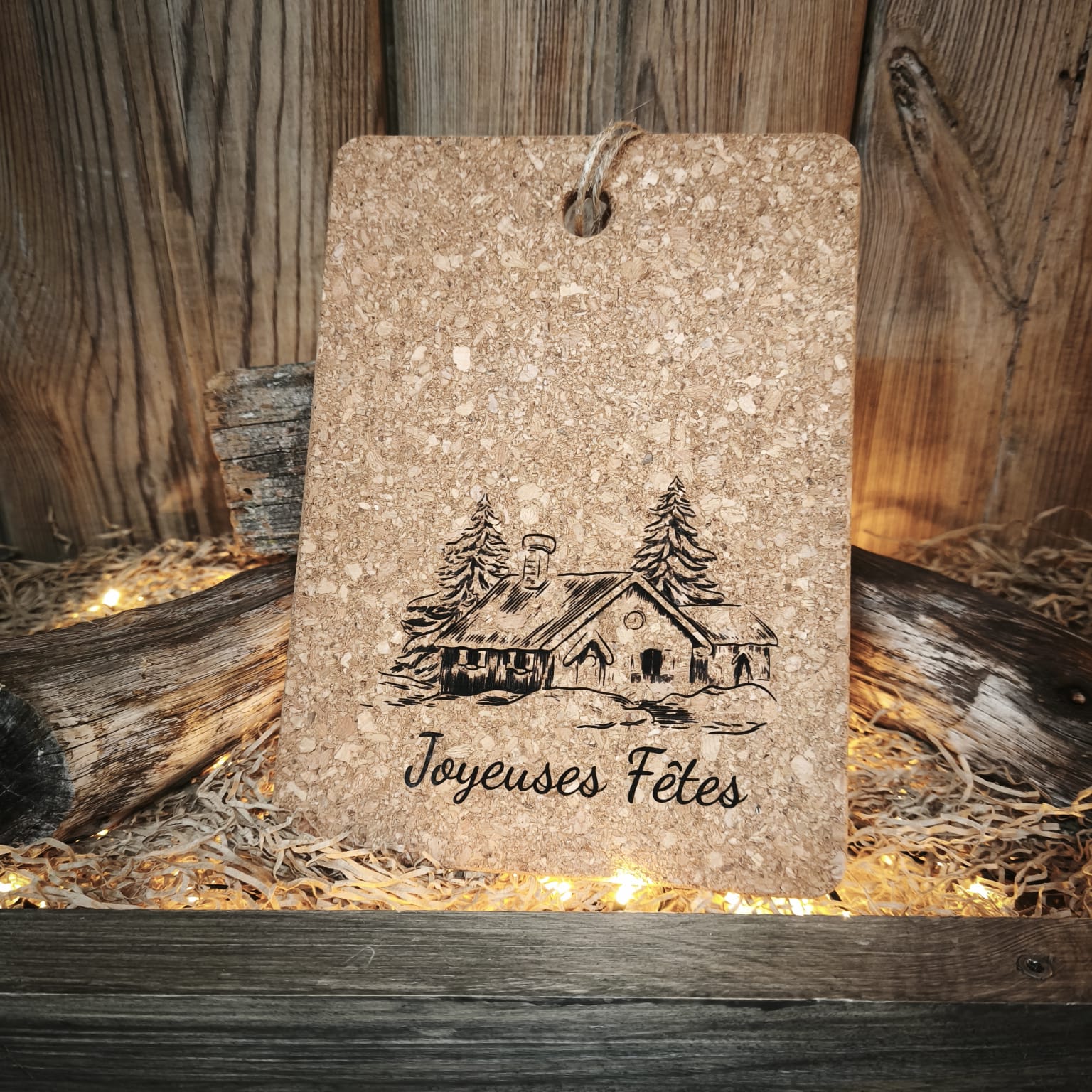 Protégez votre table avec style grâce à ce dessous de plat en liège personnalisable avec un dessin de chalet.  Ajoutez votre propre texte pour un cadeau unique et pratique. Fabriqué avec du liège durable, il est à la fois élégant et respectueux de l'environnement. Parfait pour les dîners de Noël et les fêtes en famille.